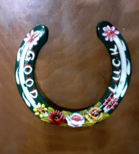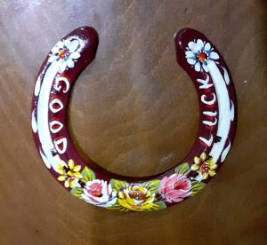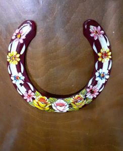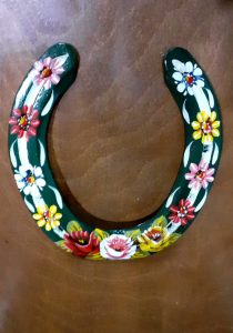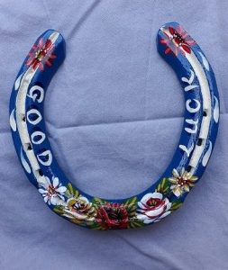 Decorated Horseshoes Dark Red 'Good Luck' Horseshoe Black 'Good Luck' Horseshoe Dark Red 'Roses & Daisies' Horseshoe Dark Green 'Roses & Daisies' Horseshoe Blue 'Roses & Daisies' Horseshoe Blue 'Good Luck' Horseshoe